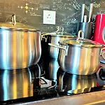 주방에서 토스터기, 주방용품, 전기 주전자를 사용할 수 있습니다.
